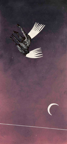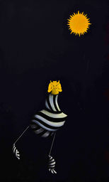 black and white stripes, a recurring motif for Fishbein which symbolizes an obscure threat. The work